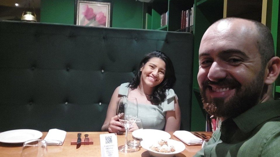 Depois do culto, fomos comer pizza. Eu, super tímida, falei pouco, mas o suficiente para perceber que algo especial começava ali.
